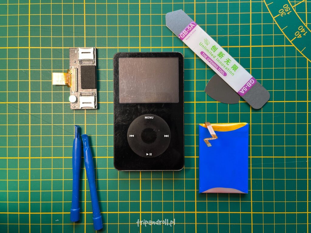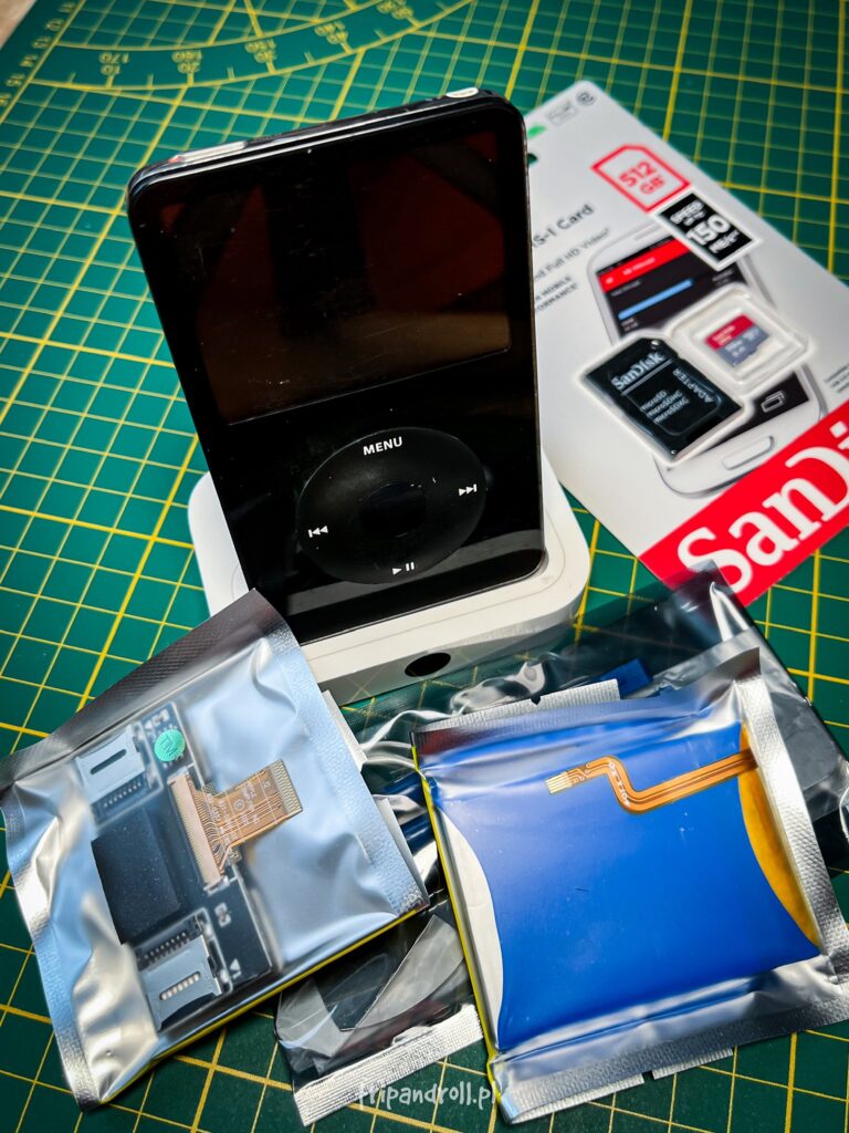 30GB to trochę mało, szczególnie jeśli chcielibyśmy wgrać muzykę w formacie bezstratnym dlatego na popularnym chińskim portalu zakupowym oprócz nowej baterii zmówiłem także adapter do podpięcia pamięci SD zamiast oryginalnego dysku.