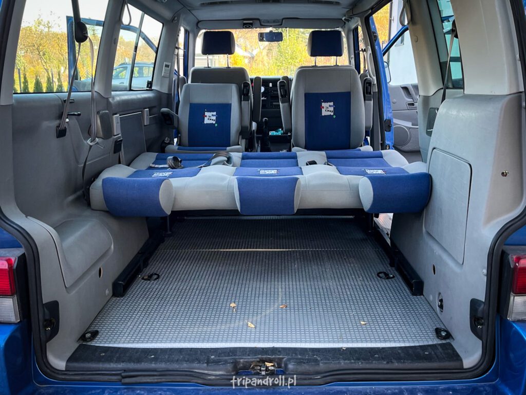 W czasie gdy samochód stal u mechanika postanowiłem zreorganizować trochę bagażnik naszego Multivana. Pod kanapą znajduje się długi, 120 cm bagażnik, który dodatkowo wydłuża się o kilkadziesiąt centymetrów po rozłożeniu łóżka.